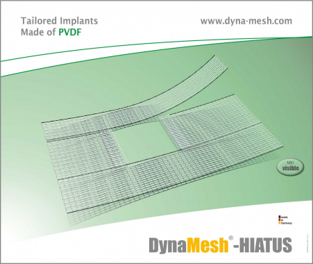 DynaMesh®-HIATUS-implantat är speciellt utvecklade för hiatusplastik och syftar till att uppnå ett långvarigt stöd och stabilisering av diafragma i området för matstrupen.